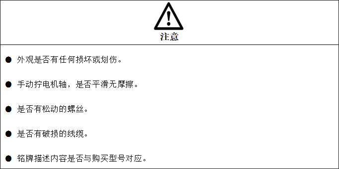 請(qǐng)按照下表逐一檢查,以防止操作不當(dāng)造成產(chǎn)品及人員的損傷。