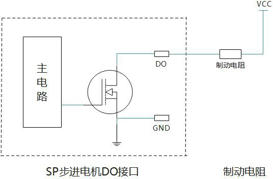 電源VCC正極接制動(dòng)電阻后與SP步進(jìn)電機(jī)的DO接口相連,對(duì)應(yīng)的GND與電源負(fù)極相連??蓭椭姍C(jī)將其因急停等情況產(chǎn)生的再生電能轉(zhuǎn)化為熱能,本功能待后續(xù)開發(fā)更新。