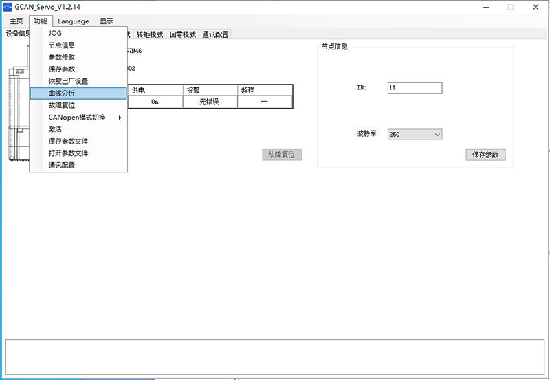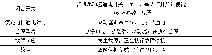 ● 狀態(tài):顯示當(dāng)前設(shè)備狀態(tài),包括(CANopen狀態(tài),供電狀態(tài),報(bào)警狀態(tài)和超程報(bào)警)。