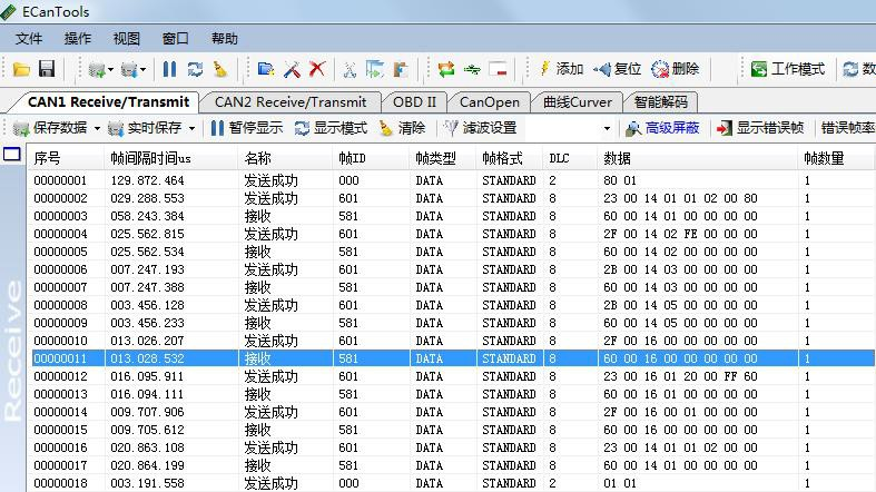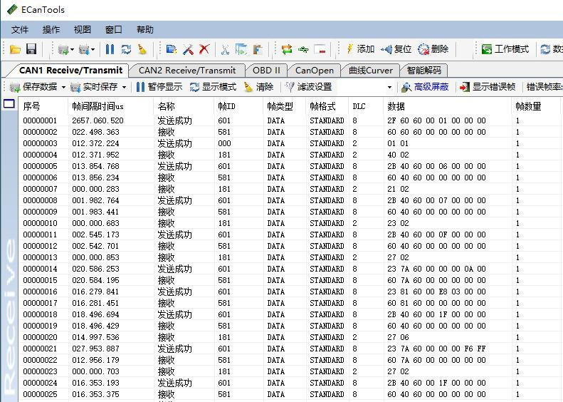 報(bào)文:ID:0x601數(shù)據(jù):2B 40 60 00 1F 00 00 00。