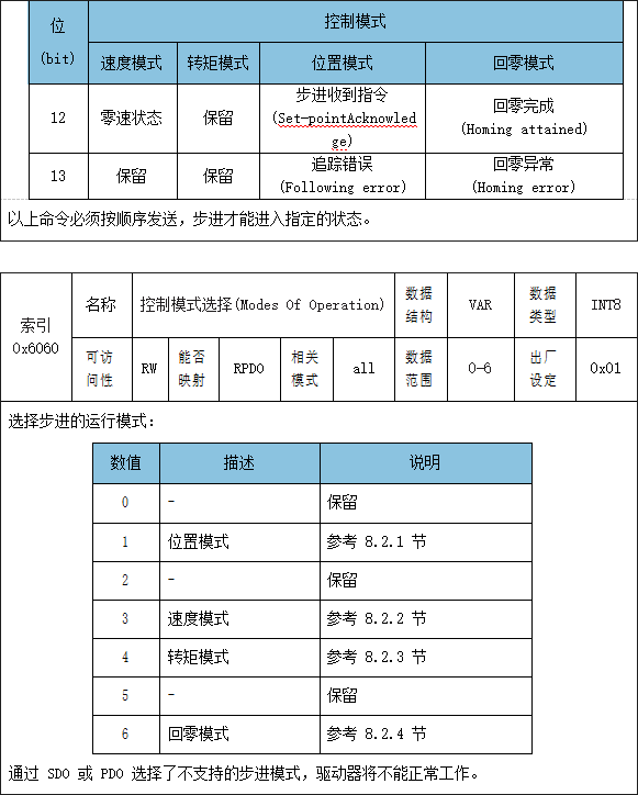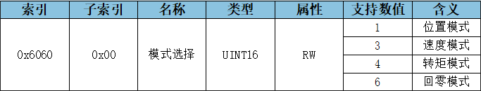 報(bào)文:ID:0x601數(shù)據(jù):2F 60 60 00 06 00 00 00,設(shè)置0x6060為6,設(shè)置運(yùn)行模式為回零模式。