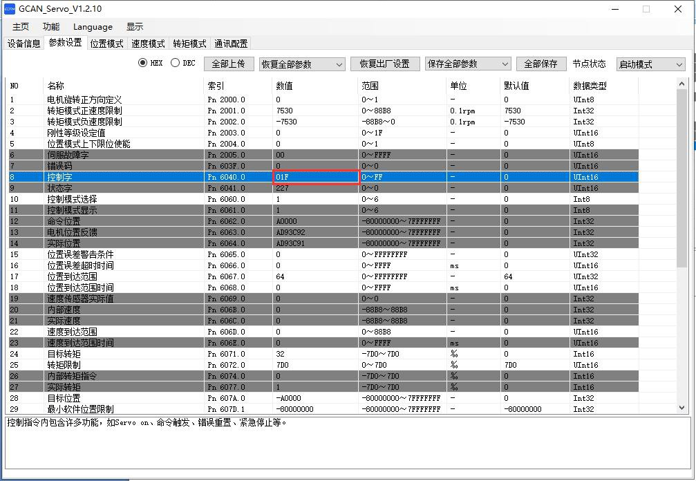 1、設(shè)置控制模式為轉(zhuǎn)矩模式:索引Pn 6060.0輸入04。