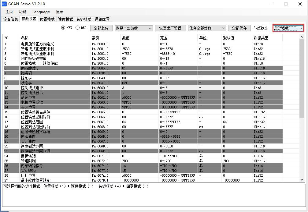 ● CANopen模式切換:CANopen模式切換:啟動(dòng)模式、停止模式、預(yù)操作模式、復(fù)位節(jié)點(diǎn)、復(fù)位通訊。