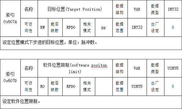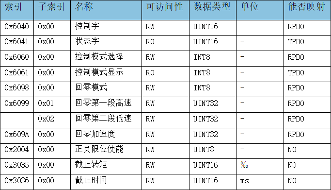 如果需要檢測正、負(fù)限位信號(hào),需將索引0x2004設(shè)為1,即使能正負(fù)限位信號(hào)檢測,否則正、負(fù)限位信號(hào)無效。
