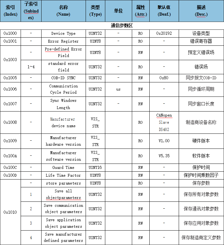 9.2.2對(duì)象字典0x2XXX,0x3XXX,0x5XXX自定義參數(shù)詳細(xì)說明