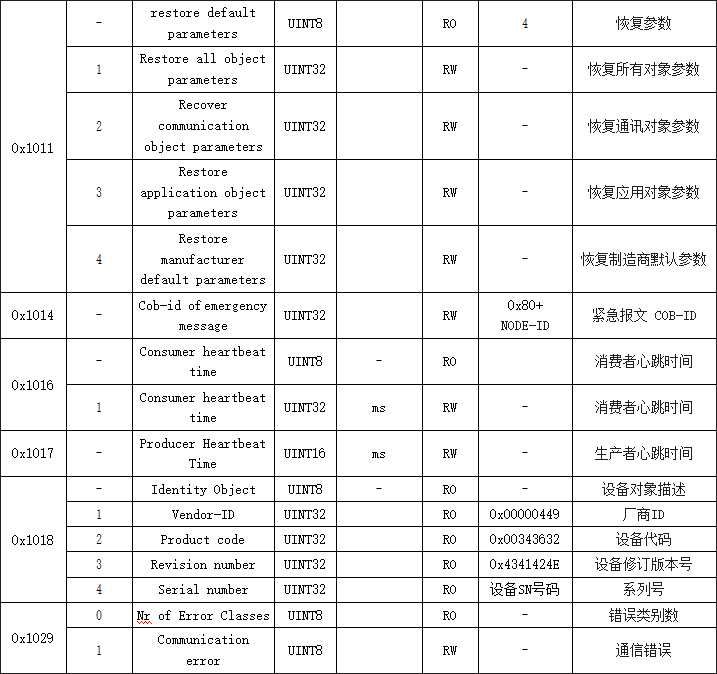 9.2.1對(duì)象字典0x1XXX通訊對(duì)象詳細(xì)說明