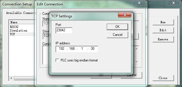 6、Port(端口)請輸入23042。IP地址為192.168.1.30,設置好后點OK