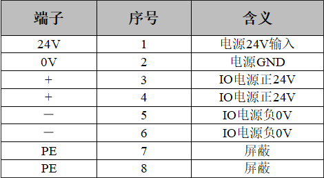 GCAN-PLC-510的電源接線端子排如下圖所示,其接口定義如下表所示。GCAN-PLC-510可編程邏輯控制器電源部分包含8個端子,需要注意的是:3號端子與4號端子之間、5號端子與6號端子之間、7號端子與8號端子之間,在模塊的內部是相連的。