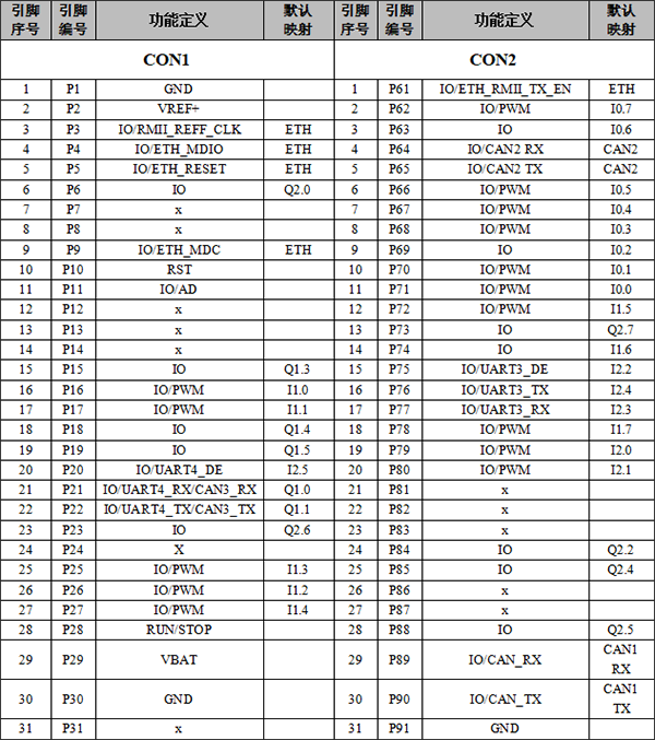 四、GCAN-PLCcore-M7引腳定義及功能說明