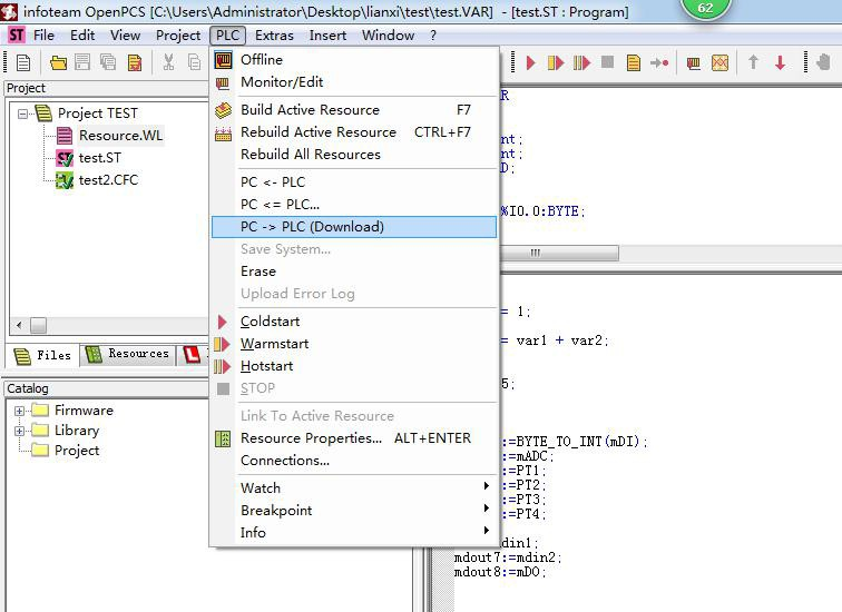 4、在下拉菜單中點(diǎn)擊PC->PLC(Download)下載程序。