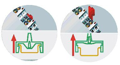 請(qǐng)按上圖所示,把GCAN-PLC-400安裝在導(dǎo)軌上,直到卡扣卡緊發(fā)出“咔”的聲音。之后您需要逆時(shí)針旋轉(zhuǎn)控制器外殼左端的橙色旋鈕,將控制器的左端牢固地固定在導(dǎo)軌上。GCAN-PLC-400具有自鎖機(jī)制,可有效防止設(shè)備掉落,如上圖所示。您可以拉拽橙色拉桿帶動(dòng)卡扣松動(dòng)后將控制器及IO模塊從導(dǎo)軌上取下,橙色拉桿拉動(dòng)分為兩個(gè)階段,第一次拉動(dòng)只是將拉桿拽出,在拉出后繼續(xù)拽動(dòng)會(huì)感受到明顯的阻力,這個(gè)時(shí)候才會(huì)松動(dòng)卡扣。取下控制器之前,您需要順時(shí)針旋轉(zhuǎn)控制器外殼左端的橙色旋鈕,解除鎖定狀態(tài)。