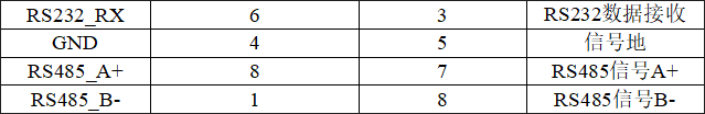 GCAN-PLC-400的主控模塊由總線通信模塊與供電模塊組成??偩€通信模塊上集成了一路以太網(wǎng)接口、一路RS232/485復(fù)用接口、一路CAN總線接口,其分別使用RJ45接口、RJ45接口、4P端子接口引出。RS232與RS485接口樣式如下圖所示,其接口定義如下表所示;CAN總線接口樣式如下圖所示,其接口定義如下表所示。