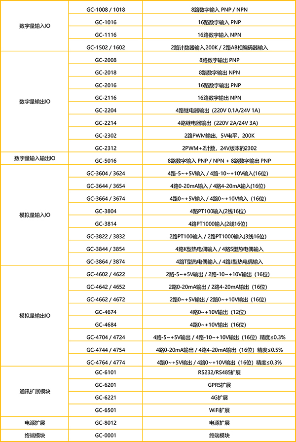 (5)在電源供應(yīng)充足情況下可擴(kuò)展IO模塊數(shù)量最多為32個(gè)(最多32x8個(gè)DI/DO點(diǎn));其中當(dāng)擴(kuò)展模塊數(shù)量超過(guò)16片時(shí),需額外增加一片上述的IO供電擴(kuò)展模塊GC 8012以保證電源供應(yīng)充足;