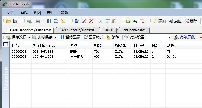 本章將使用廣成科技USBCAN-II Pro模塊及ECANTools軟件可以進(jìn)行CAN總線數(shù)據(jù)的接收與發(fā)送。軟件附帶的CANopen主站功能可以幫助調(diào)試CANopen從站,非常的方便實(shí)用。