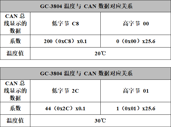 多組GC-3804模塊與CAN數(shù)據(jù)對(duì)應(yīng)關(guān)系