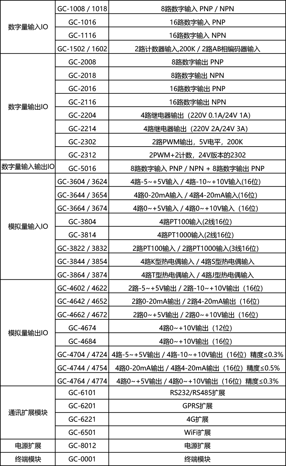 GCAN-8000 CANopen IO總線耦合器可連接的模塊包括: