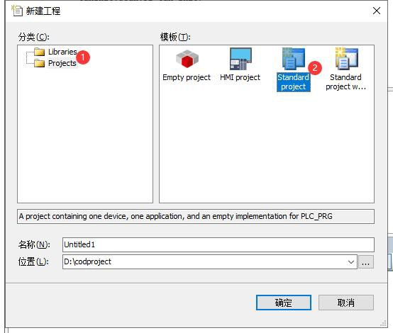 菜單工具欄->文件->新建工程,創(chuàng)建Standard project,設(shè)備選擇“GCAN-PLC-M”,如下圖所示。