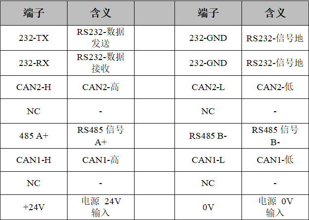 GCAN-PLC-320/321/322的通信與供電接口定義