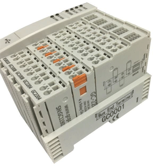 GCAN-PLC最多可以連接32個(gè)GC系列IO模塊。插入模塊時(shí),一定要沿著凹槽,在已有模塊的右側(cè)順次插入,直到鎖扣卡死并發(fā)出“咔”的一聲。當(dāng)您正確組裝節(jié)點(diǎn)時(shí),在端子模塊之間不會(huì)存在明顯的縫隙。如果有一個(gè)模塊未被正確組裝,整個(gè)IO系統(tǒng)將不會(huì)正常運(yùn)行。