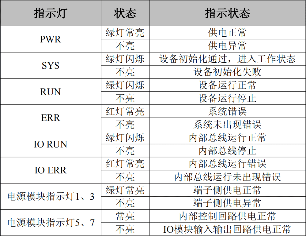 表2.4 GCAN-PLC指示燈狀態(tài)含義