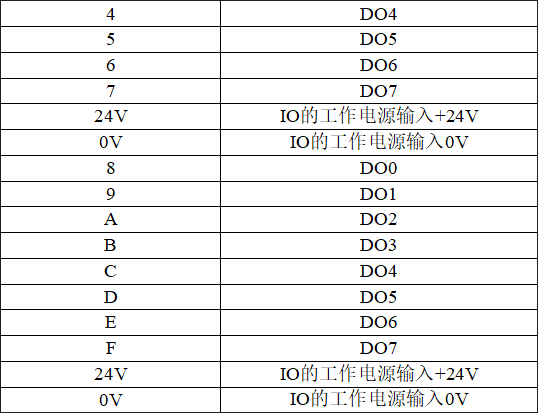 GCAN-5032 EtherCAT遠(yuǎn)程IO模塊的主控模塊含有上下四排端子排,下方兩排端子排為DO端子排,分別為DO0~DO7,DO8~DOF共16個(gè)數(shù)字量輸出點(diǎn),以及2組IO電源輸入(請(qǐng)任選1組IO工作電源接口接入24V即可,注意同時(shí)需要接入系統(tǒng)電源,系統(tǒng)電源詳見(jiàn)表,IO工作電源與系統(tǒng)電源彼此隔離),如圖所示。各個(gè)端子對(duì)應(yīng)的序號(hào)及其含義如表所示。