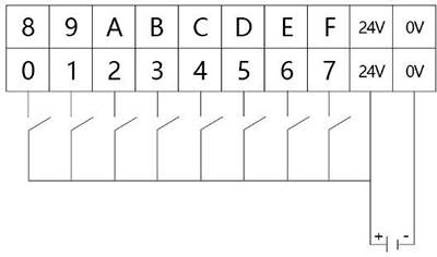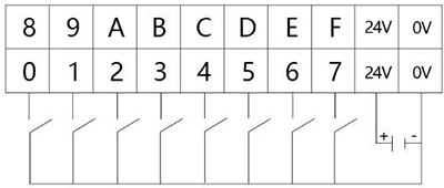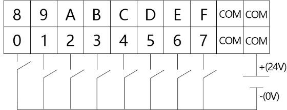 上方兩排端子為DI端子排,分別為DI0~DI7,DI8~DIF共16個(gè)數(shù)字量輸入點(diǎn),以及4個(gè)DI的COM接口(4個(gè)COM口任意連接1個(gè)即可),如圖所示。各個(gè)端子對(duì)應(yīng)的序號(hào)及其含義如表所示。