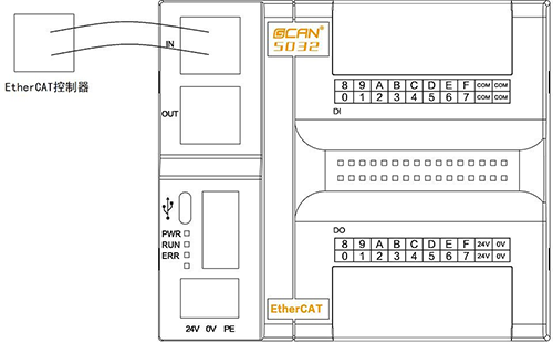 GCAN-5032 EtherCAT遠(yuǎn)程IO模塊與EtherCAT控制器連接