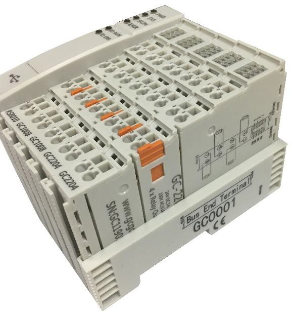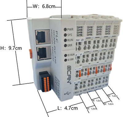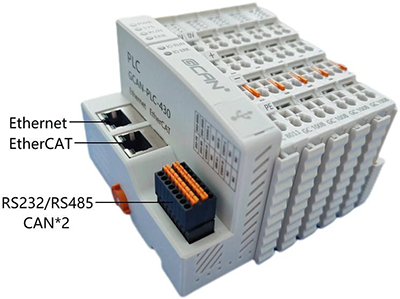 GCAN-PLC-430是集成有總線控制功能的、帶EtherCAT主站控制的可編程邏輯控制器(PLC)。其不僅具有外觀簡(jiǎn)約、高性價(jià)比的特點(diǎn),還可以方便的連接入CAN總線系統(tǒng)及Modbus系統(tǒng)等,并可通過插片式IO模塊進(jìn)行擴(kuò)展。GCAN-PLC-430產(chǎn)品由一個(gè)可編程的主控模塊、若干GC系列IO模塊(GC-1008、GC-2008等)以及一個(gè)終端電阻模塊組成。GCAN-PLC-430主控模塊可連接所有的GC系列IO模塊,用戶可根據(jù)現(xiàn)場(chǎng)實(shí)際需求自行選擇擴(kuò)展IO模塊,IO模塊數(shù)量最多可擴(kuò)展32個(gè),主控模塊可根據(jù)插入IO模塊的前后位置自動(dòng)分配地址,實(shí)現(xiàn)自動(dòng)組態(tài)。