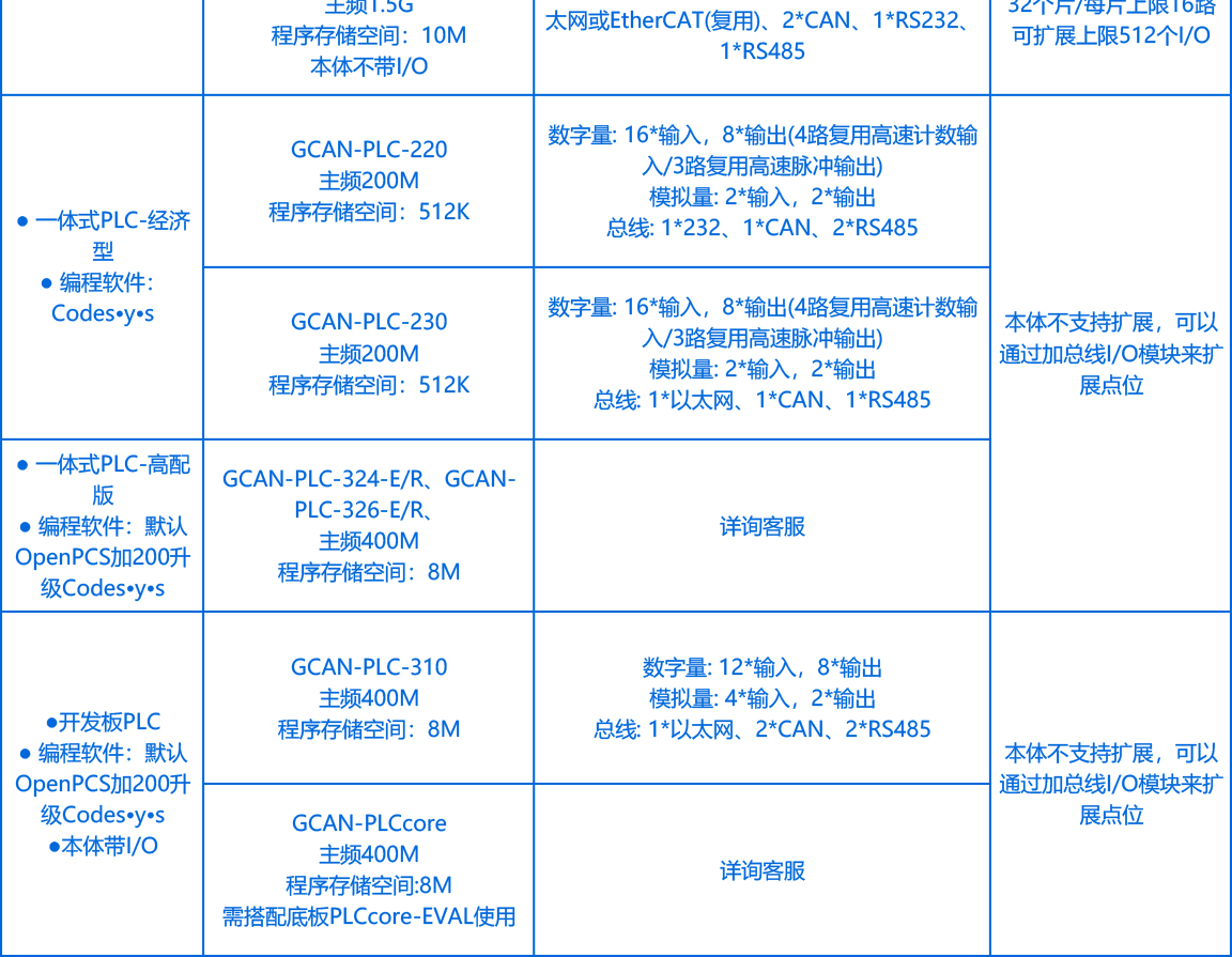 一體式PLC設(shè)備鏈接組合式PLC設(shè)備鏈接(支持EtherCAT)組合式PLC設(shè)備鏈接(不支持EtherCAT)PLC核心開發(fā)板