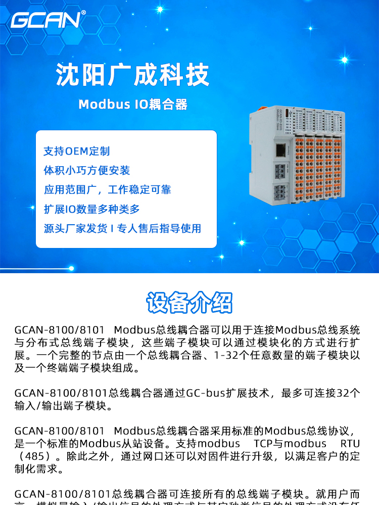 GCAN-8100插片式modbus IO耦合器