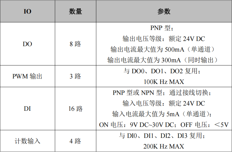 (4)8路DO(復用3路PWM脈沖輸出);16路DI(復用4路計數(shù)輸入);