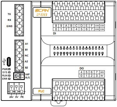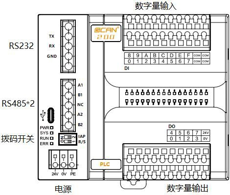 - GCAN-PLC-200是一款集成有總線控制功能的可編程邏輯控制器(PLC)。其不僅具有外觀簡約、高性價比的特點,還可以方便的連接入Modbus系統(tǒng)等。