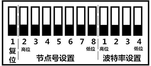 (8)使用撥碼開關(guān)配置模塊波特率及節(jié)點(diǎn)號(hào);