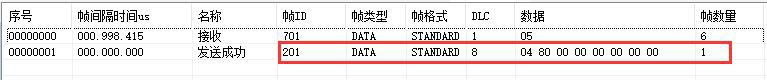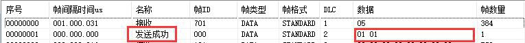 報(bào)文:ID:0x000數(shù)據(jù):01 01,設(shè)置模塊為05啟動(dòng)狀態(tài)。