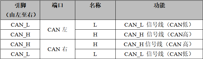 GCAN-4128模塊的CAN-bus通道,由1路2 Pin插拔式接線端子引出,左右2個(gè)CAN接口,可以用于連接1個(gè)CAN-bus網(wǎng)絡(luò)或者CAN-bus接口的設(shè)備,支持CANopen協(xié)議。GCAN-4128模塊CAN-bus接口接口位置如圖所示,接口定義如表所示。