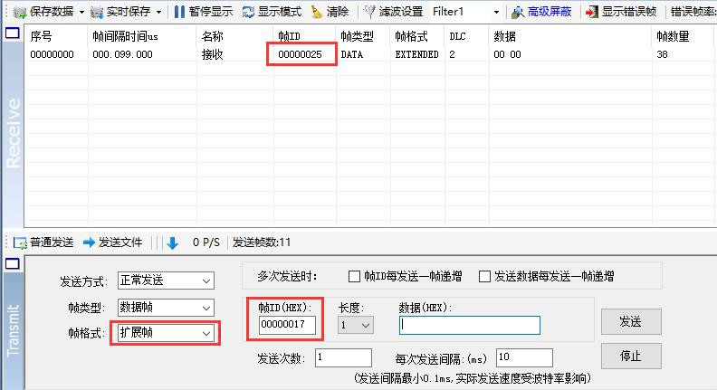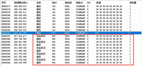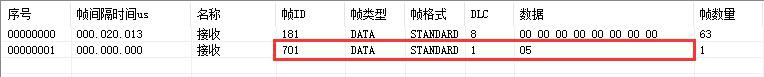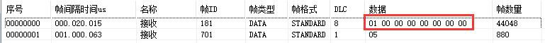 報(bào)文:ID:0x000數(shù)據(jù):01 01,設(shè)置模塊為05啟動(dòng)狀態(tài)。
