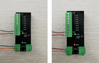 回到GCAN-4128模塊,DO4口對(duì)應(yīng)橘燈亮,代表DO4口有輸出。