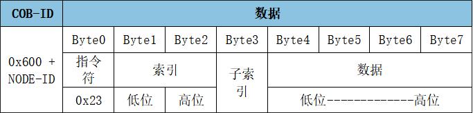 SDO寫(xiě)入對(duì)象字典中數(shù)據(jù)類型的長(zhǎng)度為32位參數(shù)命令: