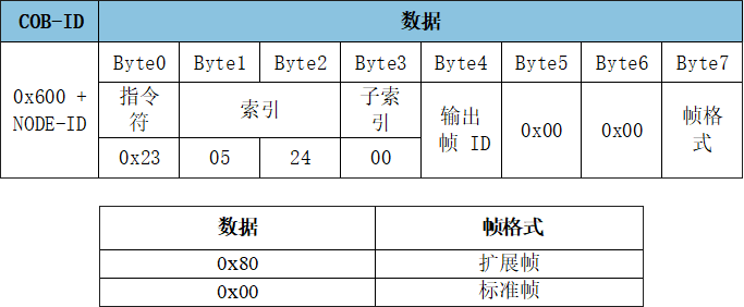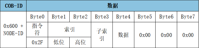 SDO寫(xiě)入對(duì)象字典中數(shù)據(jù)類型的長(zhǎng)度為8位參數(shù)命令: