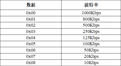 數(shù)據(jù)對(duì)應(yīng)波特率的關(guān)系見(jiàn)下表,其他數(shù)據(jù)不生效。