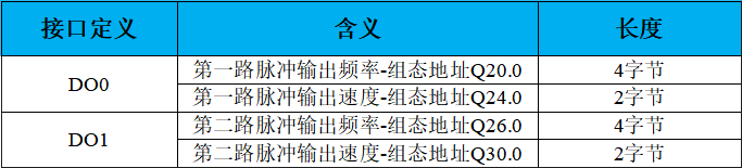 當(dāng)DO0、DO1作為PWM高速脈沖輸出使用時,其組態(tài)地址如下表所示。