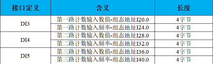 當(dāng)DI3~DI5作為高速計數(shù)輸入使用時,其組態(tài)地址如下表所示。