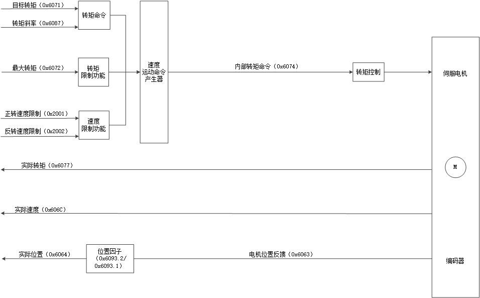 在轉(zhuǎn)矩模式下,上位機(jī)首先指定轉(zhuǎn)矩命令,然后驅(qū)動(dòng)器的運(yùn)動(dòng)命令產(chǎn)生器根據(jù)這些條件規(guī)劃出轉(zhuǎn)矩斜率。