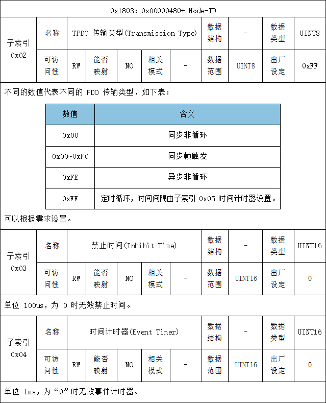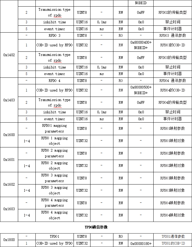 (1)對象字典0x1XXX通訊對象詳細(xì)說明