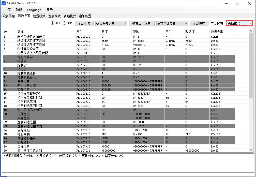 ● CANopen模式切換:CANopen模式切換:啟動(dòng)模式、停止模式、預(yù)操作模式、復(fù)位節(jié)點(diǎn)、復(fù)位通訊。