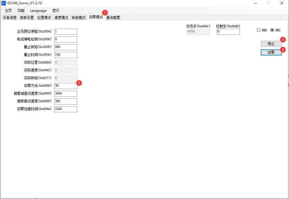 報(bào)文:ID:0x601數(shù)據(jù):2F 98 60 00 23 00 00 00,設(shè)置0x6098為23,即為方法35,將當(dāng)前位置設(shè)置為位置0點(diǎn)。