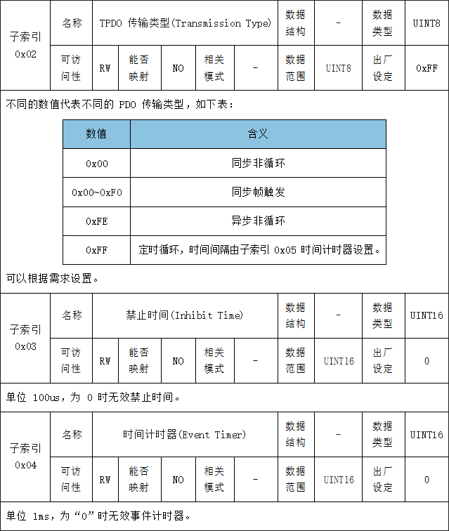 9.2.1對(duì)象字典0x1XXX通訊對(duì)象詳細(xì)說明