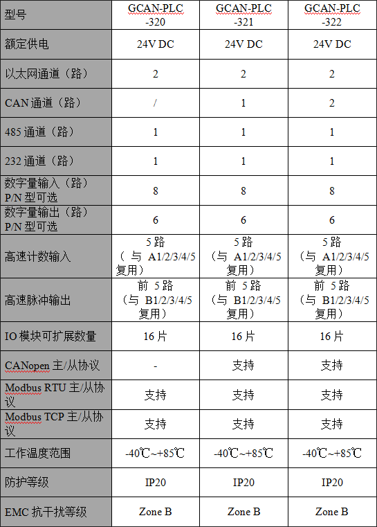 GCAN-PLC-320/321/322不僅可完成各種數(shù)字/模擬量的輸入/輸出,還集成了多種常用的工業(yè)現(xiàn)場(chǎng)總線,如:CAN總線(GCAN-PLC-321/22支持)、RS485總線、RS232總線、以太網(wǎng)總線,并支持常見(jiàn)的通信協(xié)議如:CANopen(GCAN-PLC-321/22支持)、Modbus RTU、Modbus TCP等。