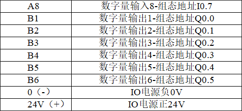 GCAN-PLC-320/321/322模塊的數(shù)字量接線端子排如圖所示。最多可接入8個(gè)數(shù)字量輸入信號(hào),6個(gè)數(shù)字量輸出信號(hào)。各個(gè)端子定義見(jiàn)下表。